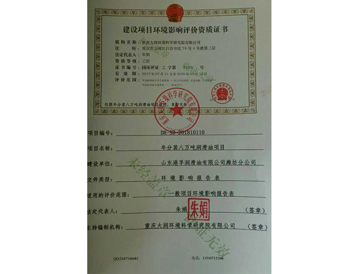港孚公司環(huán)評(píng)資質(zhì)