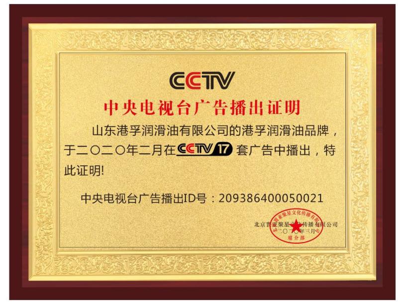 央視廣告播出證書
